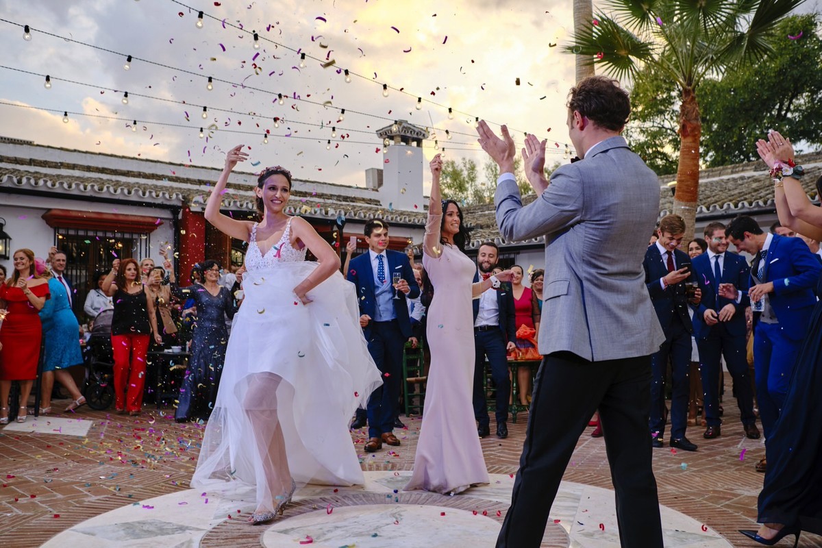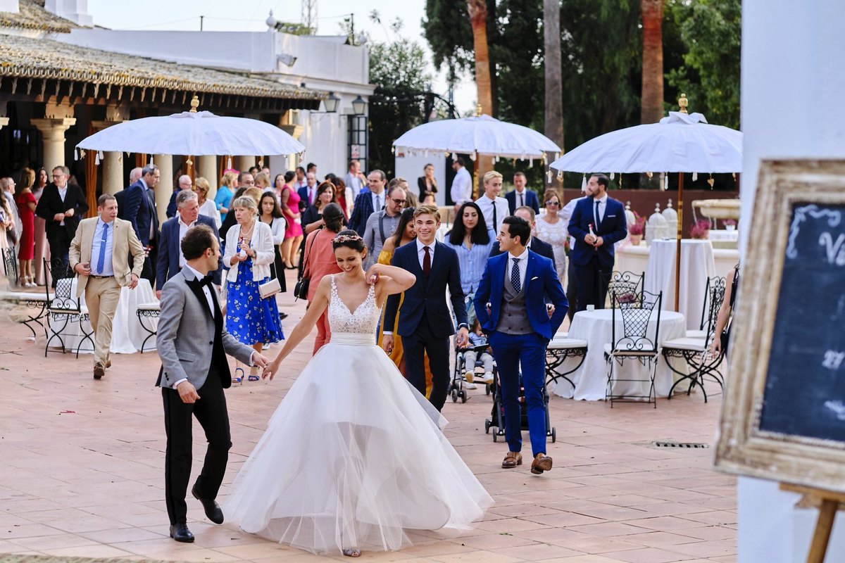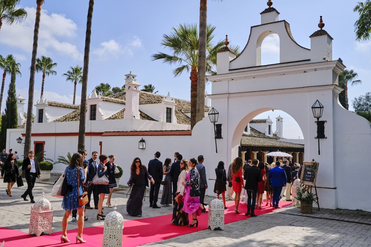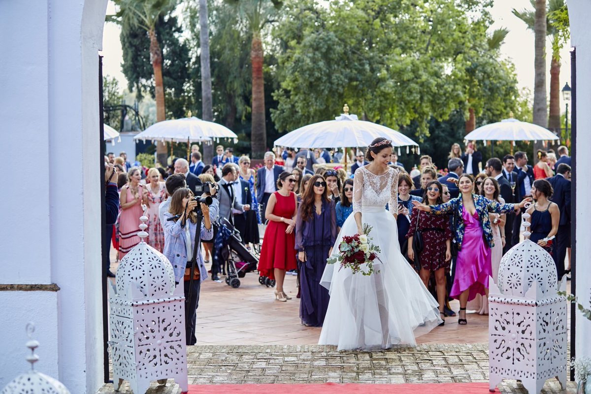 Una boda en Sevilla es una maravilla, esa adaptación del refrán popular que siempre suena por estas tierras nos viene como anillo al dedo, porque además el banquete y la fiesta se celebró en la espectacular Hacienda El Vizir de la que nos declaramos enamorados.