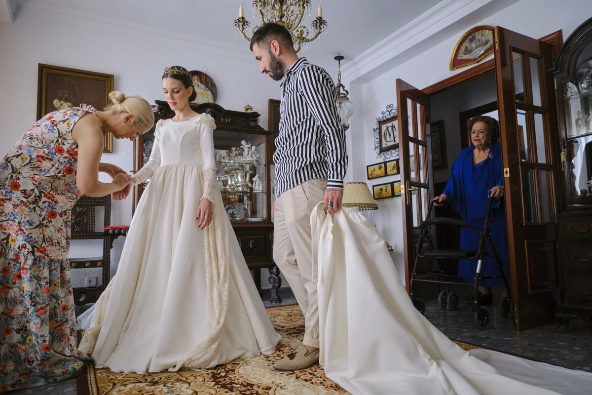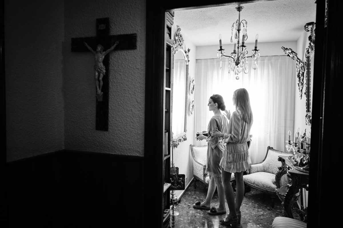 Empezamos el día con los preparativos de María en la casa familiar de su abuela, que estaba llena de cientos de recuerdos de toda la familia y donde se respiraba un ambiente de boda fabuloso.