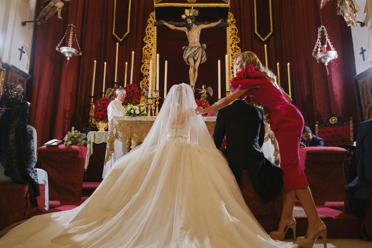 A pocos metros de la casa familiar está la Iglesia de Montserrat sede de la Hermandad de Montserrat a la que pertenece la familia, todo estaba coordinado por Daniel Machado Eventos.